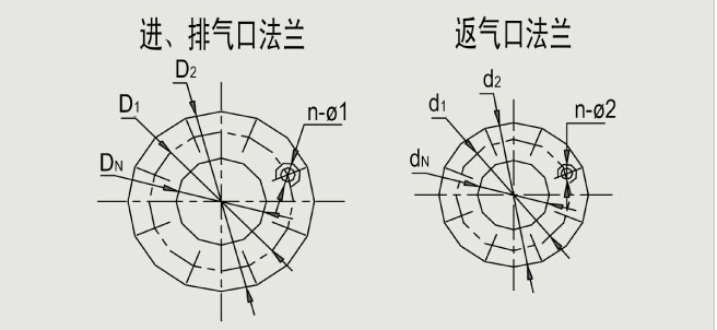 ZJQ-7500/ZJQ-10000羅茨真空泵的排氣口法蘭尺寸與ZJQ-3750羅茨真空泵的進排氣口法蘭一致
